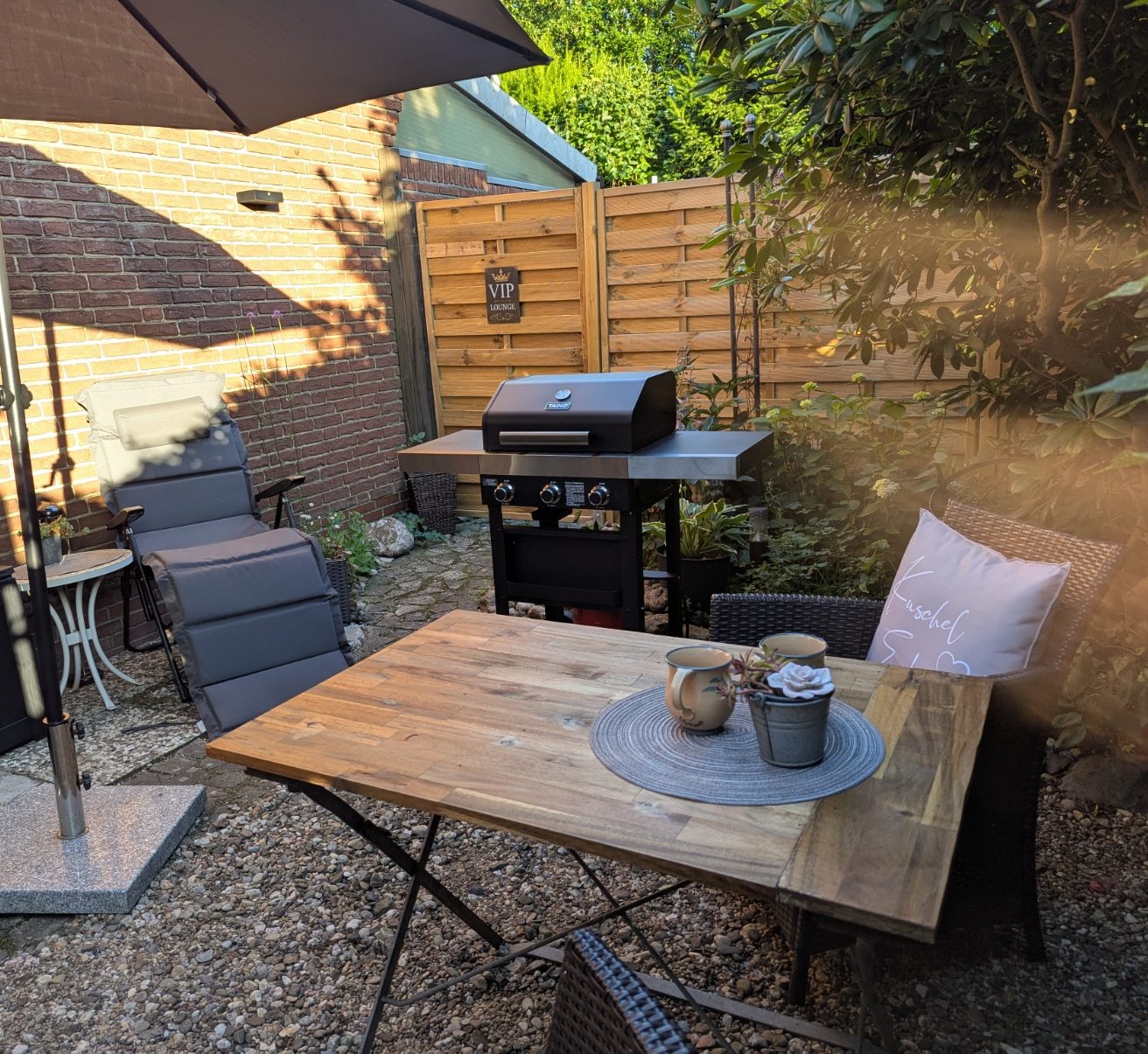 Dieser Bereich ist nur für Sie angelegt. Hier können Sie bei schönem Wetter die Sonne genießen und den Gasgrill kostenlos nutzen.