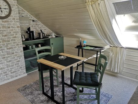 Ihr Apartment liegt im Ersten Stock und ist mit allem ausgestattet, damit Sie sich bei uns wie zu Hause fühlen.